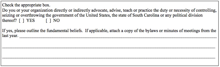 Mark Frauenfelder, “South Carolina Now Requires ‘Subversives’ to Register”, BoingBoing, 8 February 2010.